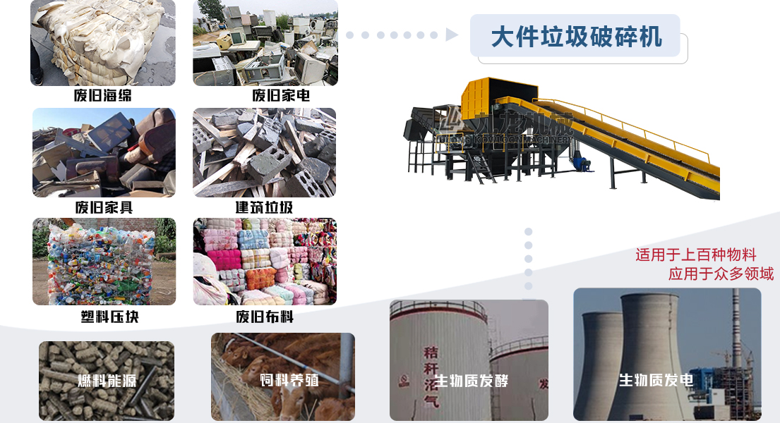 適用范圍: 廢舊床墊、沙發、廢舊家具、冰箱、家電、裝修垃圾、園林垃圾、包裝垃圾等大件生活廢棄物。